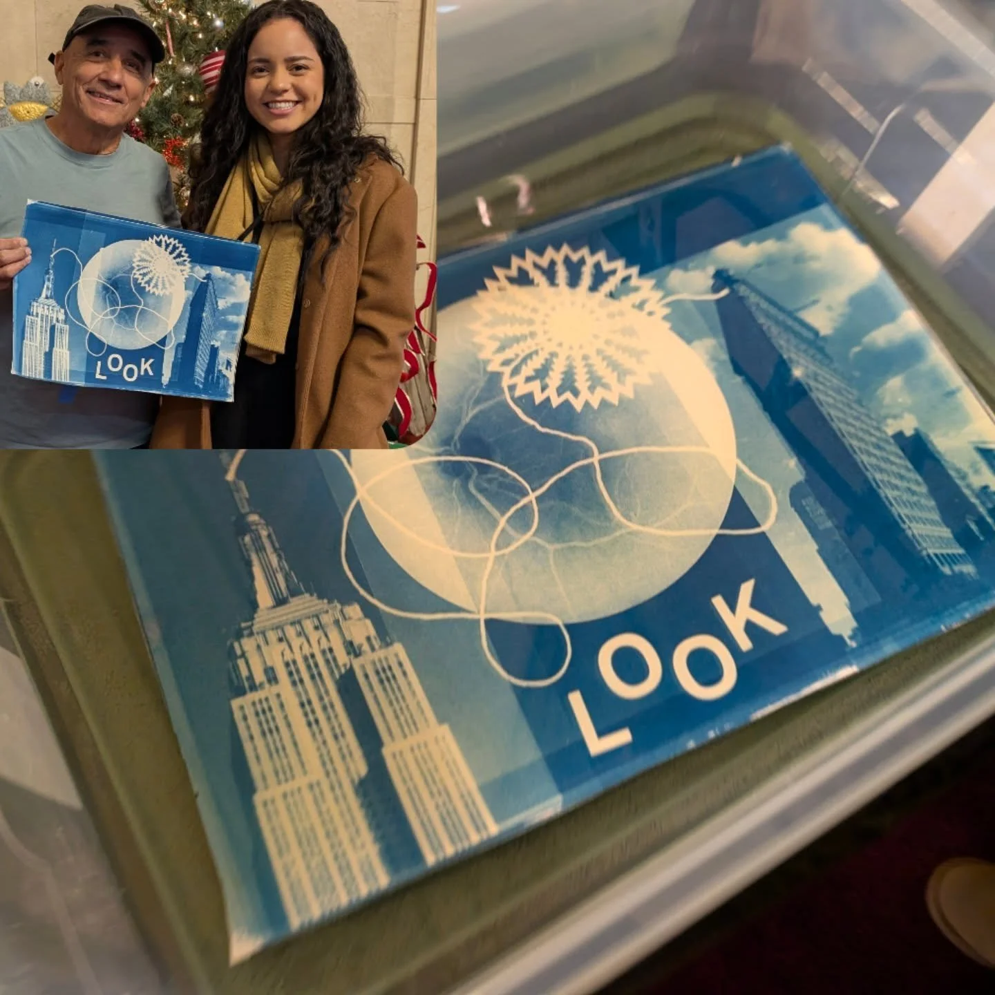 “Mine!” (Ella and Emily). Cyanotype Photogram on Watercolor Paper. 59” x 93”